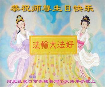 河北省张家口市赤城县两位大法弟子恭祝师尊生日快乐!