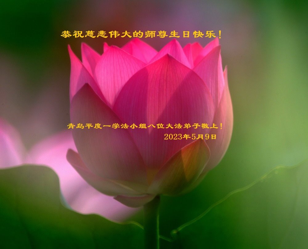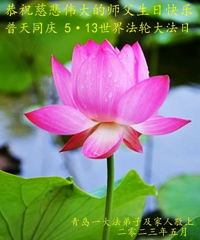 山东青岛大法弟子敬上 二零二三年五月九日 山东省青岛开发区大法弟子恭祝慈悲伟大的师尊生日快乐!恭祝法轮大法日好!