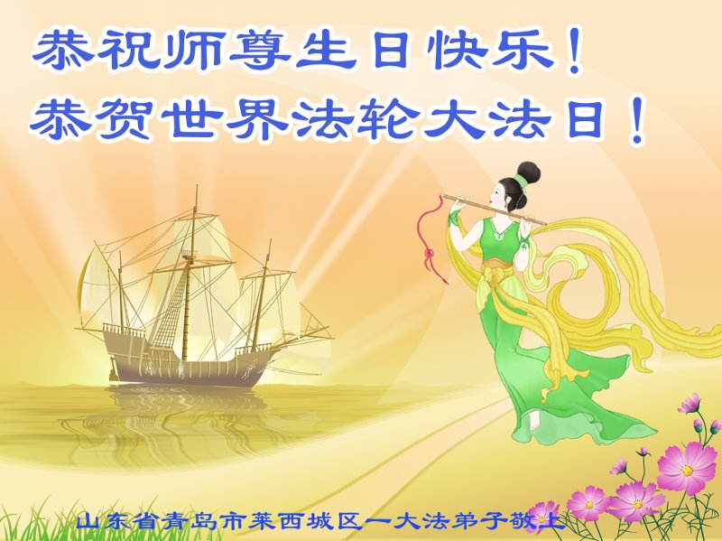 山东省青岛市莱西城区一大法弟子恭祝师尊生日快乐!庆祝世界法轮大法日!