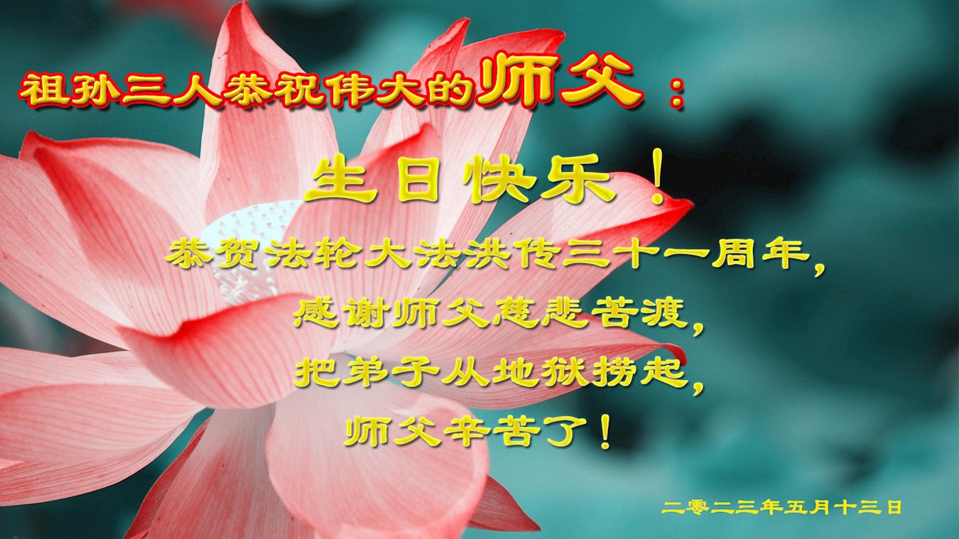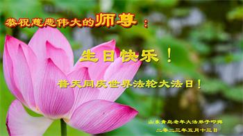 【明慧网二零二三年五月十三日】 山东青岛一大法弟子恭祝师尊生日快乐!