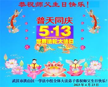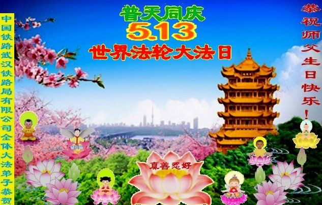 【明慧网二零二三年五月十三日】 中铁湖北省武汉铁路局集团有限公司全体大法弟子恭祝师父生日快乐!普天同庆世界法轮大法日!