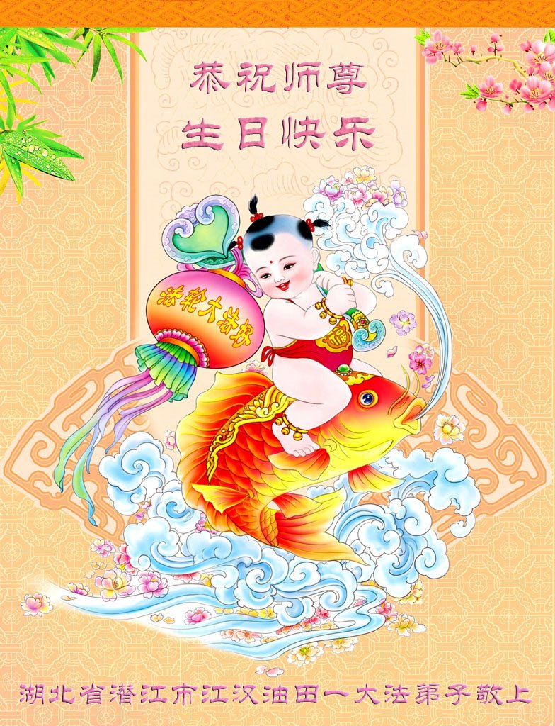 湖北省直辖行政单位潜江市江汉油田一大法弟子敬贺法轮大法日!