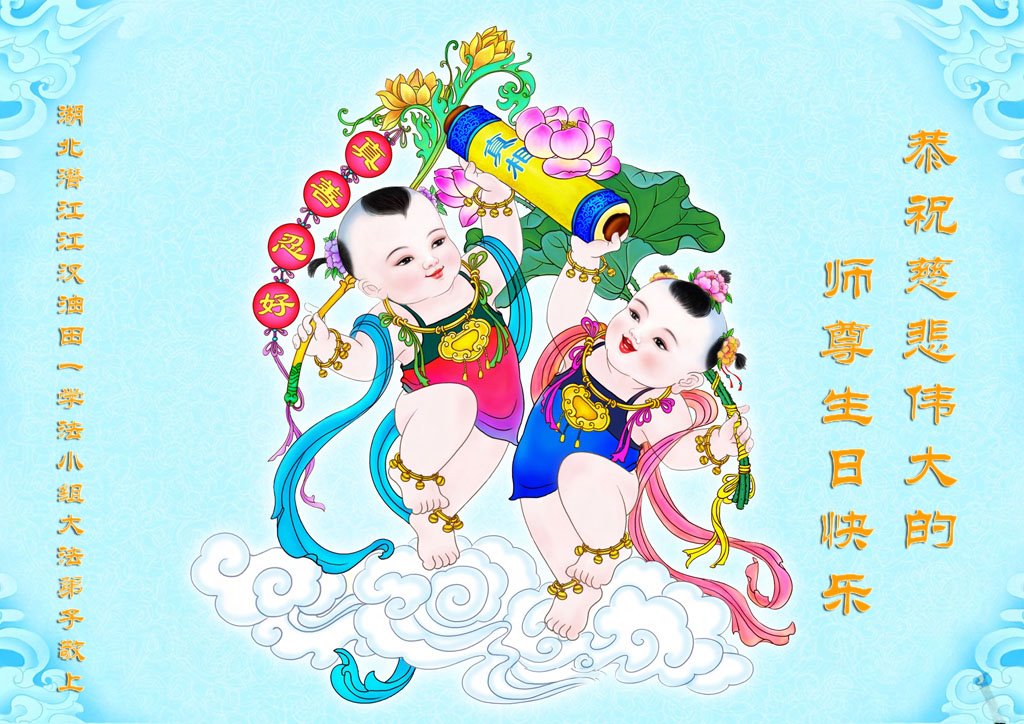 湖北武汉母女大法弟子恭祝慈悲伟大的师父生日快乐!恭贺五·一三世界法轮大法日!感谢师父的慈悲救度!