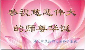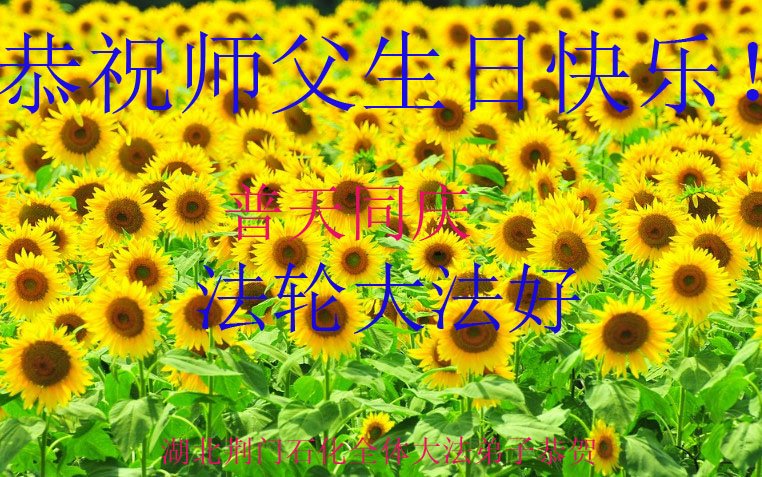 湖北省直辖行政单位潜江市江汉油田一大法弟子家属敬贺法轮大法日!恭祝师尊生日快乐! 湖北省直辖行政单位潜江市江汉油田全体大法弟子敬贺法轮大法日!恭祝师尊生日快乐!