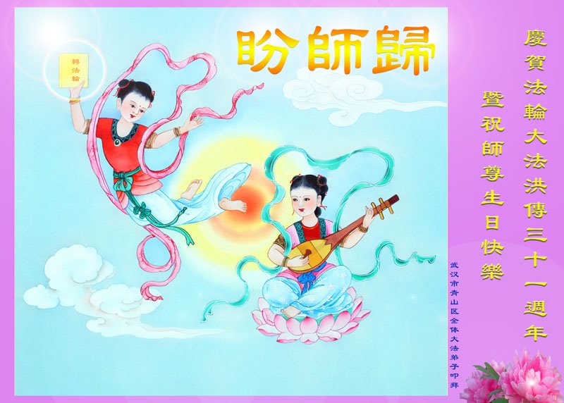 湖北省武汉市洪山区一学法小组全体大法弟子恭祝师父生日快乐!普天同庆世界法轮大法日!