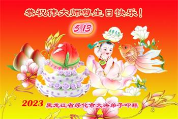 黑龙江省牡丹江大法弟子学法小组祝五·一三世界法轮大法日暨师父生日快乐!
