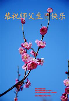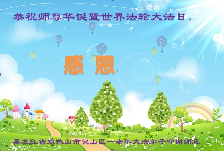 在这五·一三法轮大法日即将来临之际,弟子怀着无比感恩的心向师父问好!师父您好!您辛苦了!弟子在大法中修炼二十五年了,在师父的引领和加持下走到了今天。弟子感恩师父的慈悲救度!在今后修炼中弟子要精進实修,做好弟子应该做好的三件事,多救人,做一名师父的真修弟子,圆满随师还! 黑龙江东北小镇一位老年大法弟子恭祝慈悲伟大的师尊生日快乐!