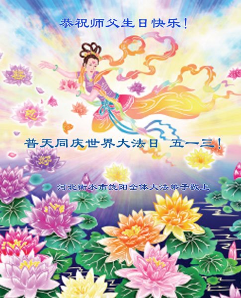 【明慧网二零二三年五月十三日】 河北省衡水市饶阳县全体大法弟子恭祝师尊生日快乐!