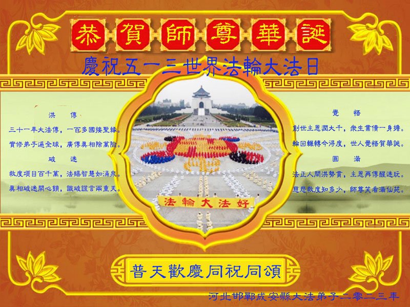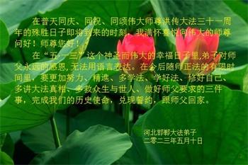 河北省邯郸一位大法弟子敬贺法轮大法日!