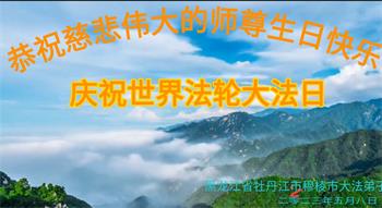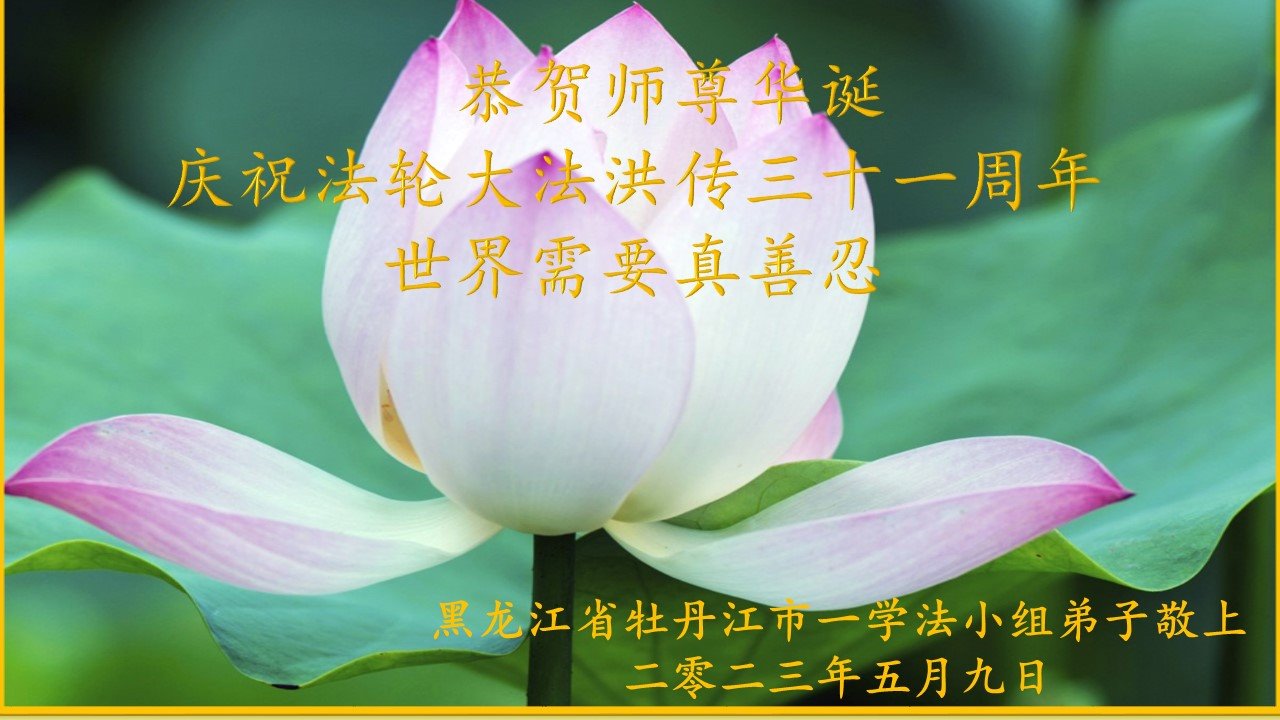 【明慧网二零二三年五月十三日】 黑龙江省牡丹江市一学法小组大法弟子恭贺师尊华诞!