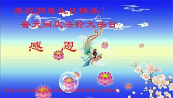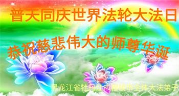 恭祝师尊生日快乐!弟子感恩师尊慈悲救度,一定珍惜这万古机缘,学好法、修好自己、多救人助师法正人间。 黑龙江省牡丹江市大法弟子恭祝师尊生日快乐!暨世界法轮大法日!