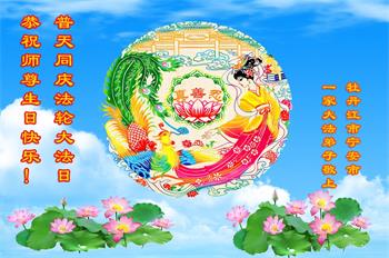黑龙江省牡丹江市阳明区一家三口人恭祝师父生日快乐!恭贺世界法轮大法日!