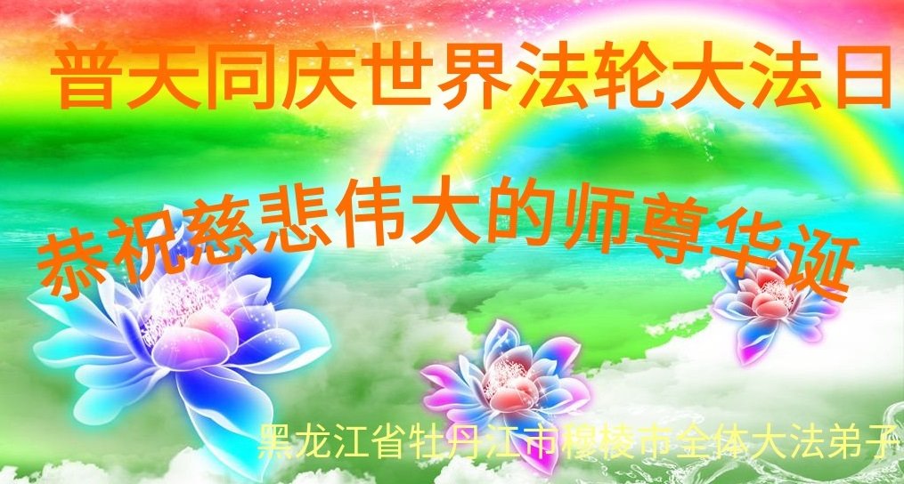 五∙一三是普天同庆的日子,感恩师尊的慈悲苦度,恭祝师尊生日快乐!弟子一定要学好法、修心去执着做好三件事,跟师尊回到自己真正天国家园。 黑龙江省牡丹江穆棱市全体大法弟子恭祝慈悲伟大的师尊生日快乐!