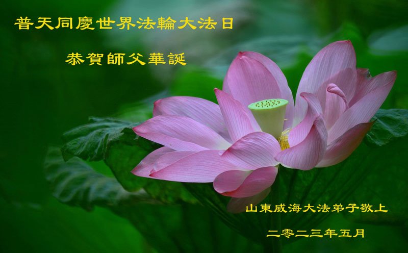 【明慧网二零二三年五月十三日】 山东威海大法弟子祝贺世界法轮大法日暨师父华诞!