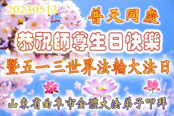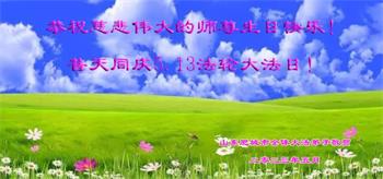 山东聊城大法弟子庆祝五·一三世界法轮大法日!祝贺师父七十二岁华诞快乐!
