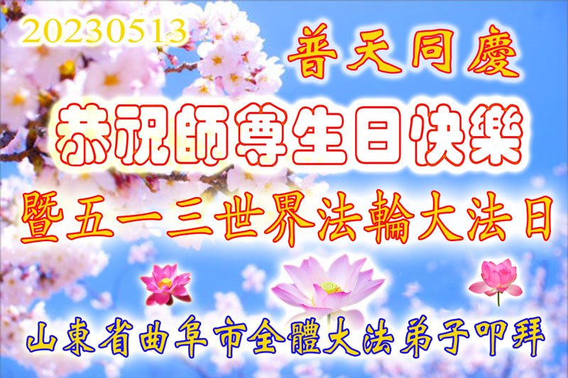 弟子感恩师父的慈悲救度与看护,做好三件事跟师父回家。 山东省曲阜市全体大法弟子恭祝慈悲伟大的师尊生日快乐!