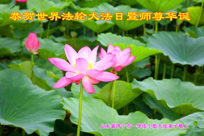 山东济宁市一学法小组大法弟子恭贺世界法轮大法日暨师尊华诞!