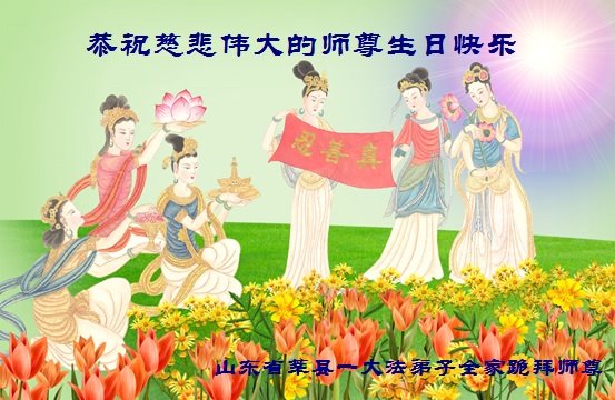 感恩师尊的慈悲救度,我们一定学好法,修好自己,放弃人世间的一切执着。跟上师尊的正法進程,多救人,做一合格的大法弟子,跟师尊回家。 山东省聊城市莘县一大法弟子全家恭祝师尊生日快乐!