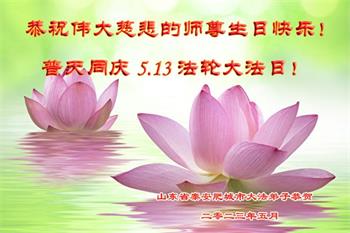 山东大法弟子恭祝慈悲伟大的师尊生日快乐!