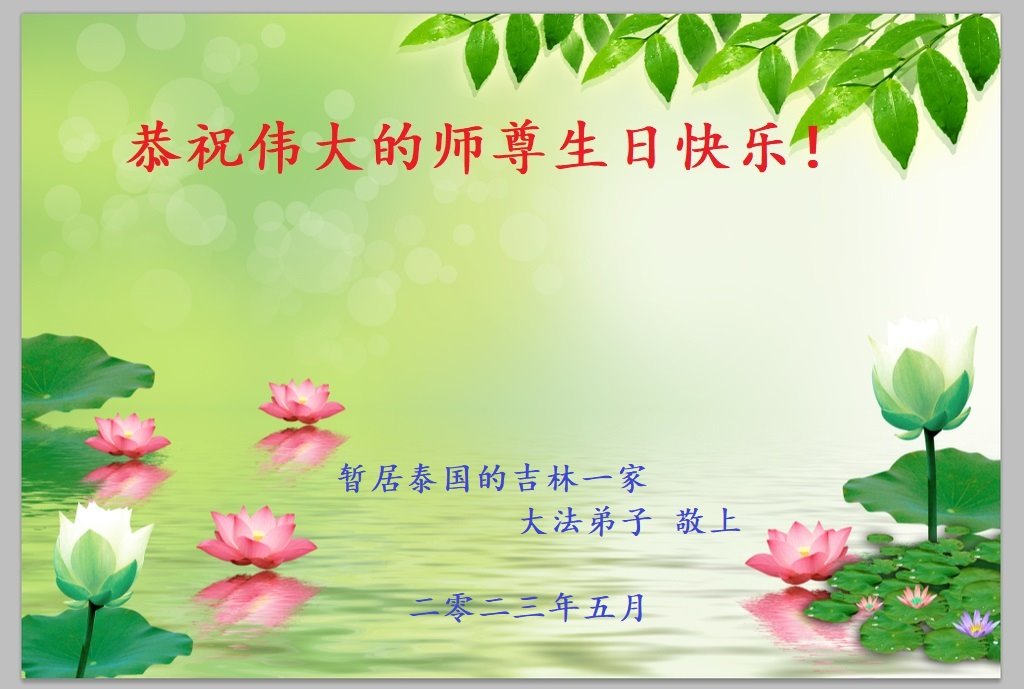 暂居泰国的吉林一家大法弟子恭祝伟大的师尊生日快乐!