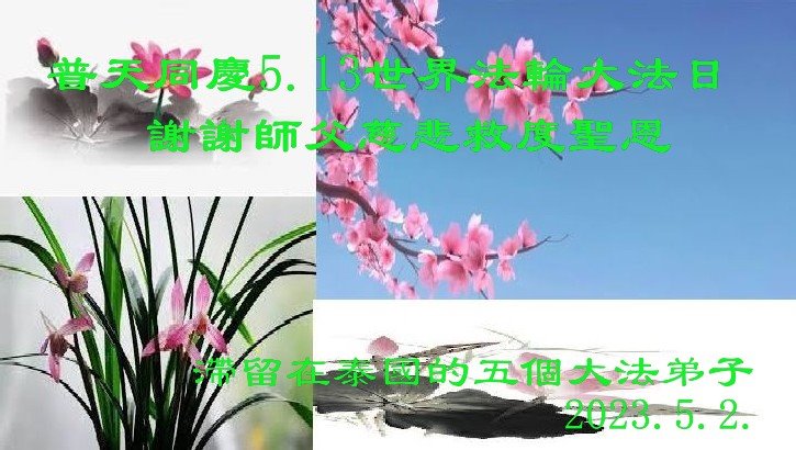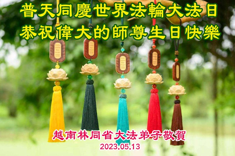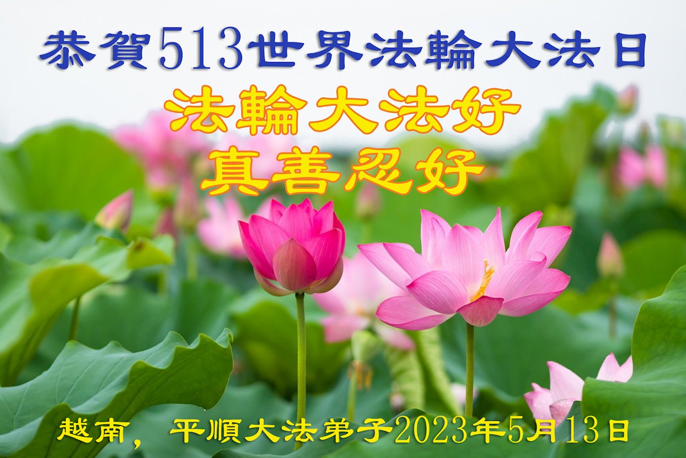 法轮大法好,真善忍好! 越南平顺大法弟子敬贺 2023年5月9日 越南平顺大法弟子恭祝师尊生日快乐!庆祝五·一三世界法轮大法日!