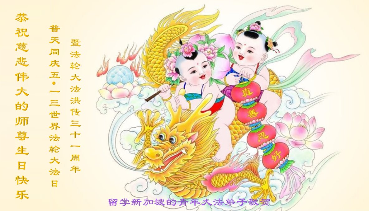 留学新加坡的青年大法弟子恭祝慈悲伟大的师尊生日快乐!