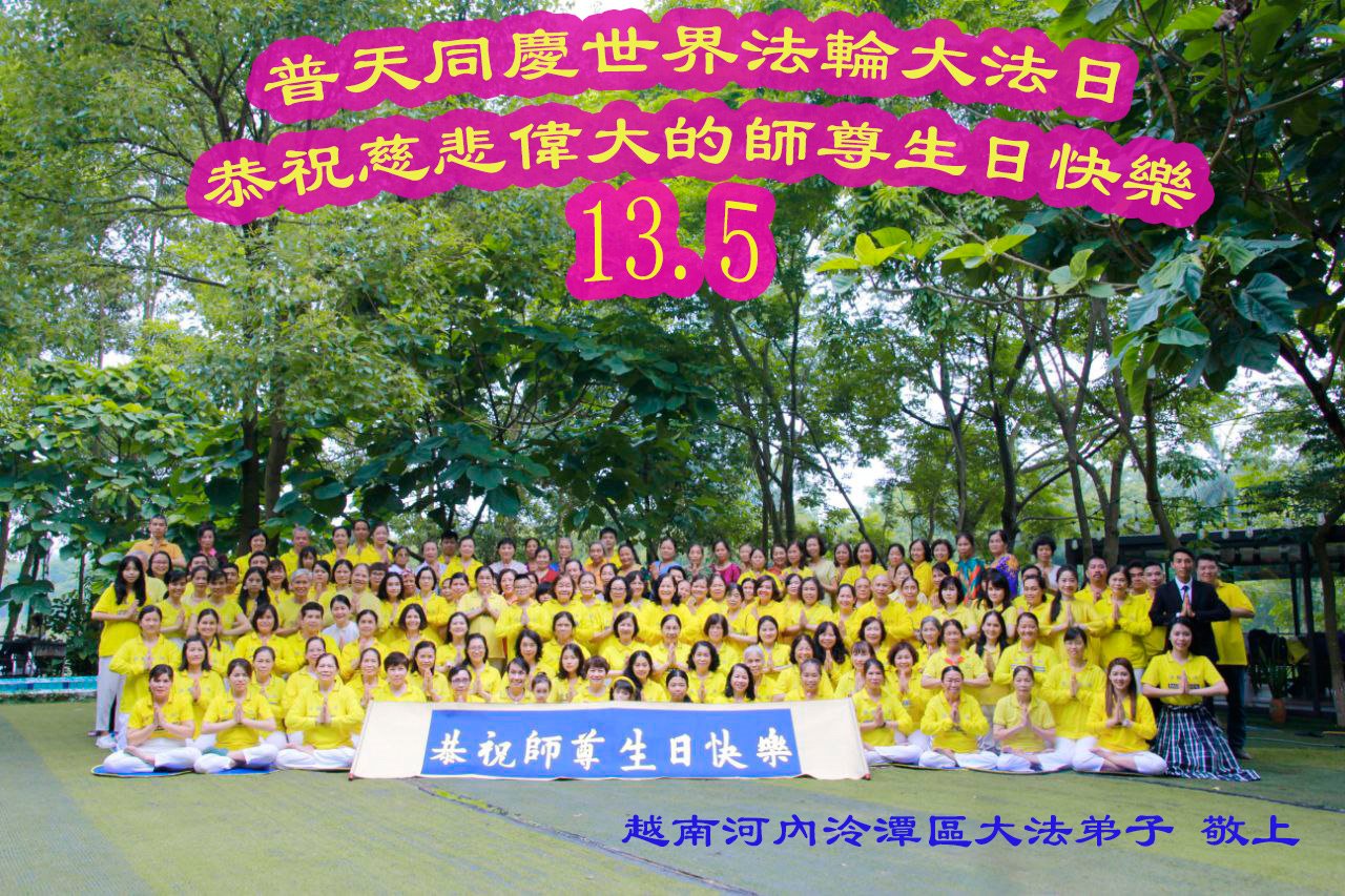 越南河内市大法弟子恭祝慈悲伟大的师尊生日快乐!