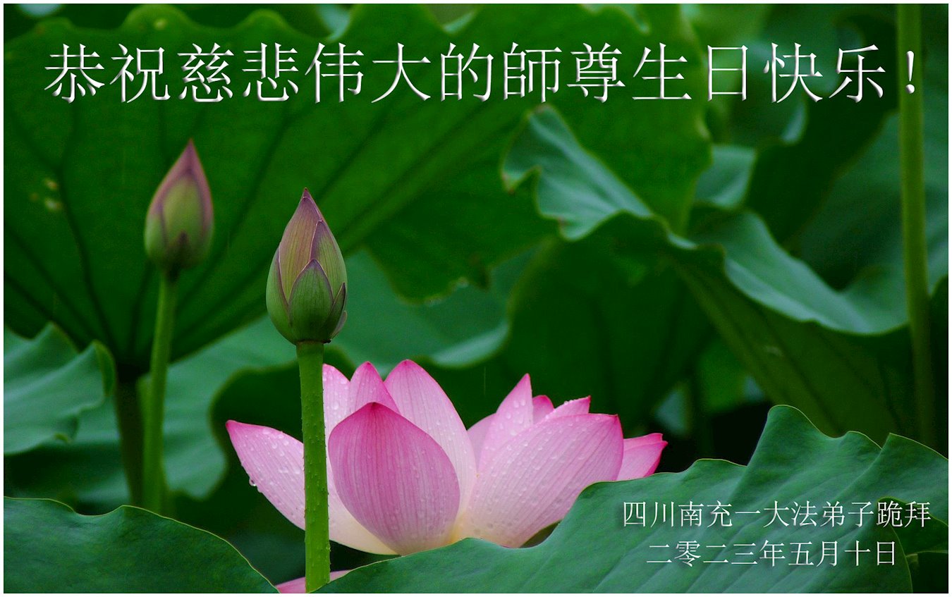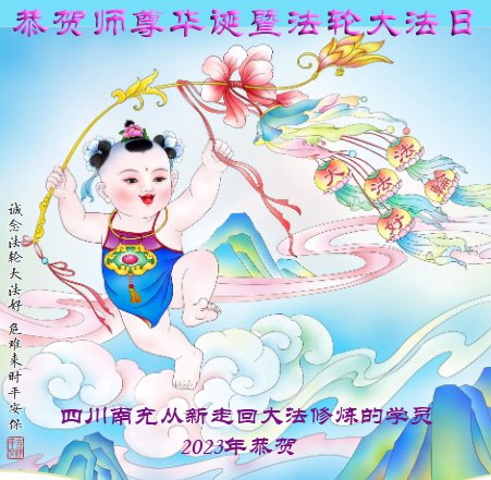 四川南充从新走回大法修炼的学员恭贺师尊华诞暨法轮大法日!