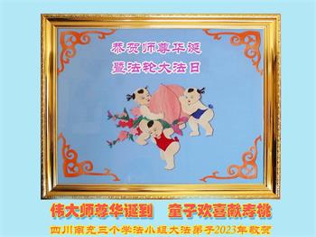 四川南充两家三代大法弟子恭贺师尊华诞暨法轮大法日!