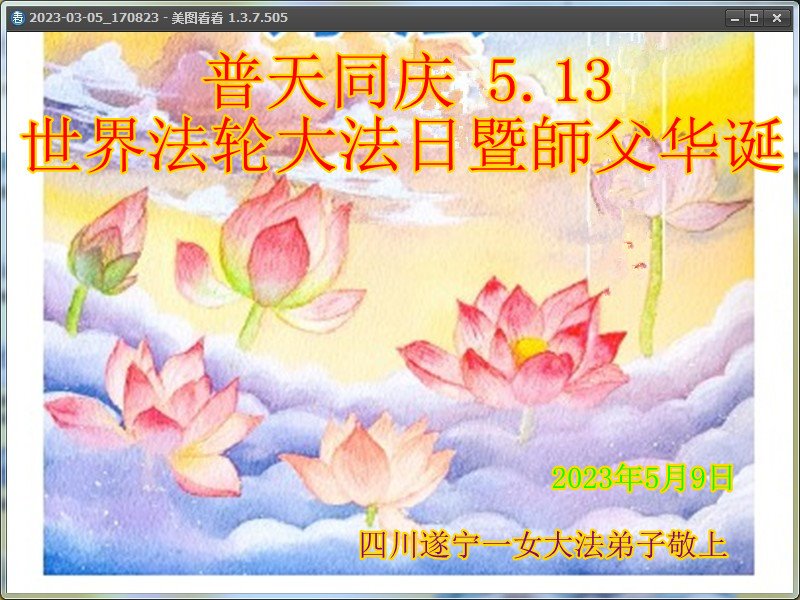 四川遂宁一女大法弟子恭贺5.13世界法轮大法日暨师父华诞!