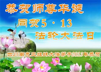 四川南充一家三姐妹大法弟子恭贺师尊华诞暨法轮大法日!