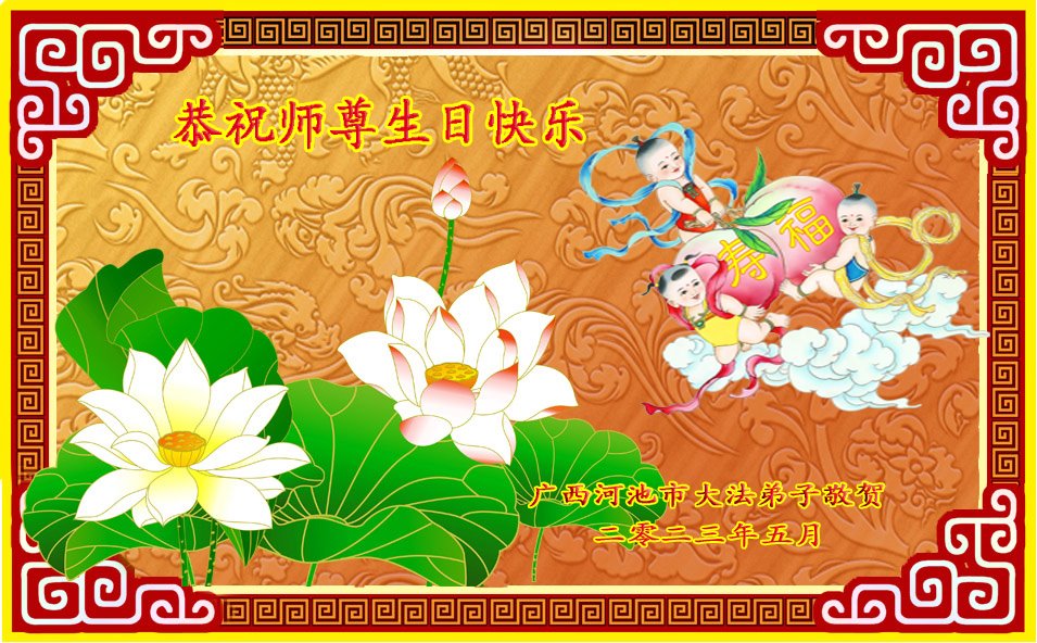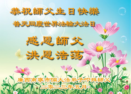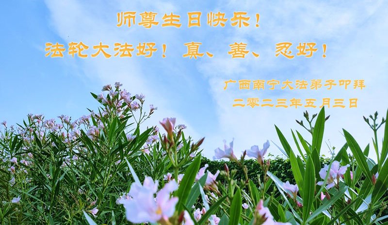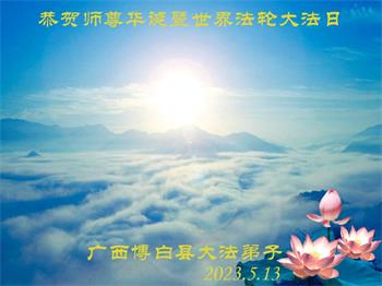 广西桂林市高三学生大法弟子敬上 2023年5月13日 广西壮族自治区玉林市博白县大法弟子恭贺师尊华诞暨世界法轮大法日!