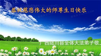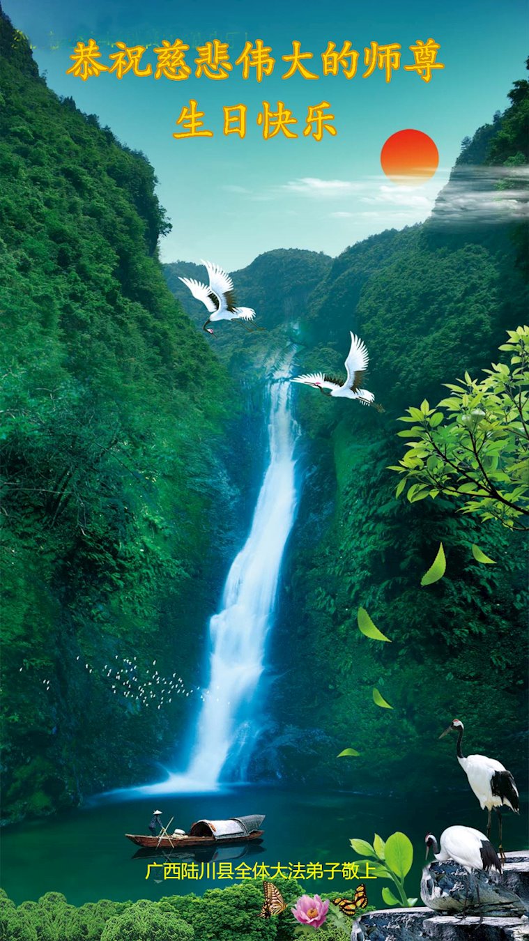 广西壮族自治区玉林市陆川县全体大法弟子恭祝慈悲伟大的师尊生日快乐!