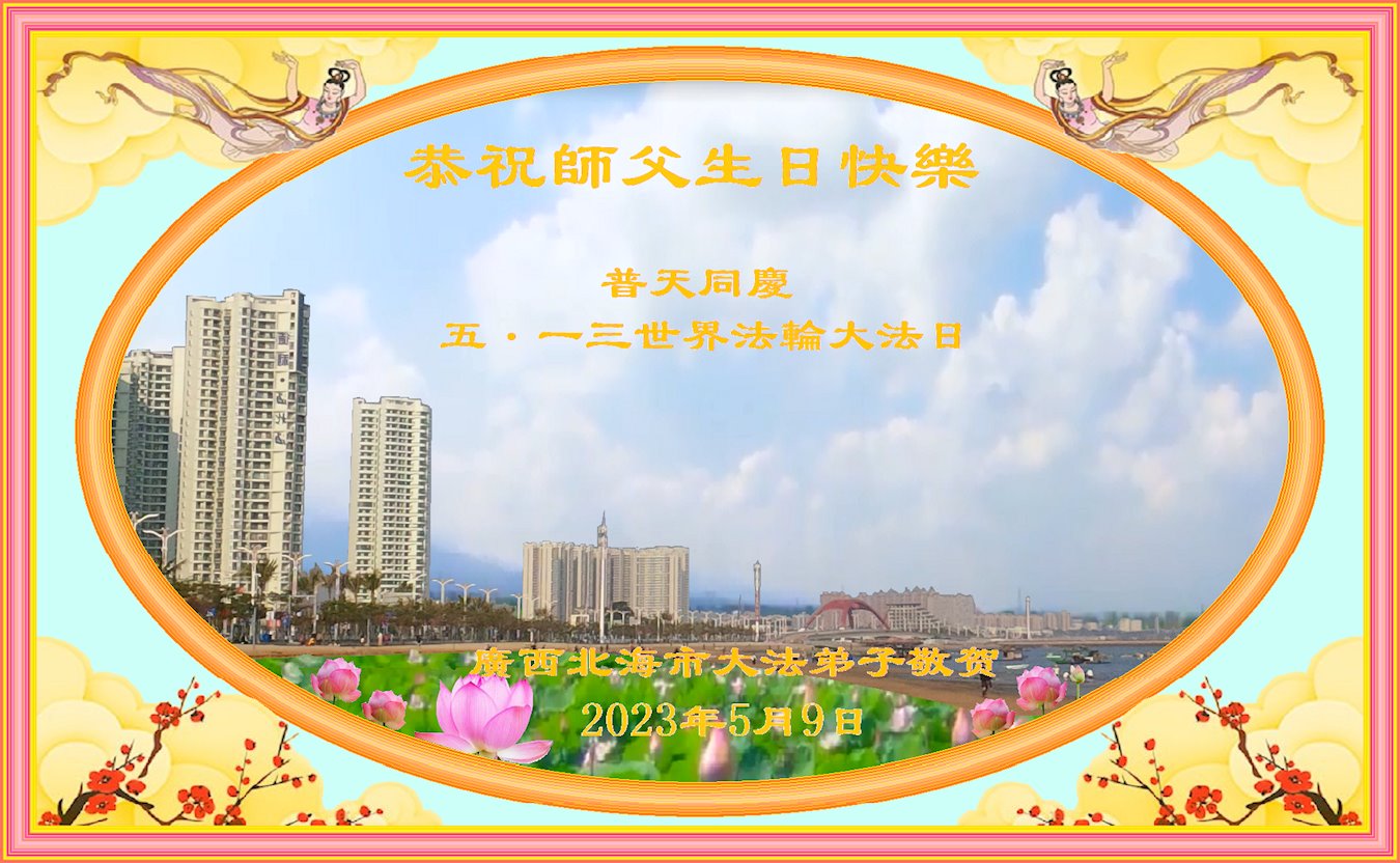【明慧网二零二三年五月十四日】 广西北海市大法弟子恭祝慈悲伟大的师父生日快乐!