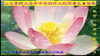 山东省临沂市蒙阴县一大法弟子及家人恭祝师尊生日快乐!恭贺法轮大法日!