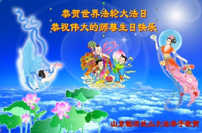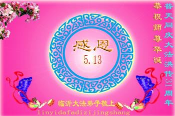 山东省临沂市兰山区的大法弟子敬祝慈悲伟大的师尊生日快乐!普天同庆同祝世界法轮大法日。 山东省临沂市兰陵县大法弟子恭祝慈悲伟大的师父生日快乐!