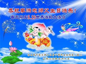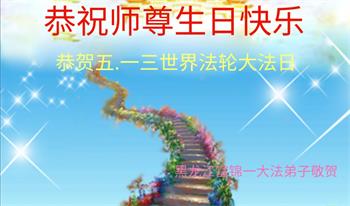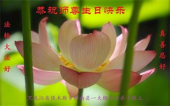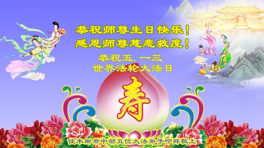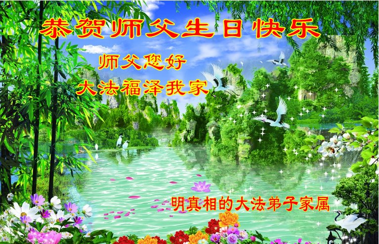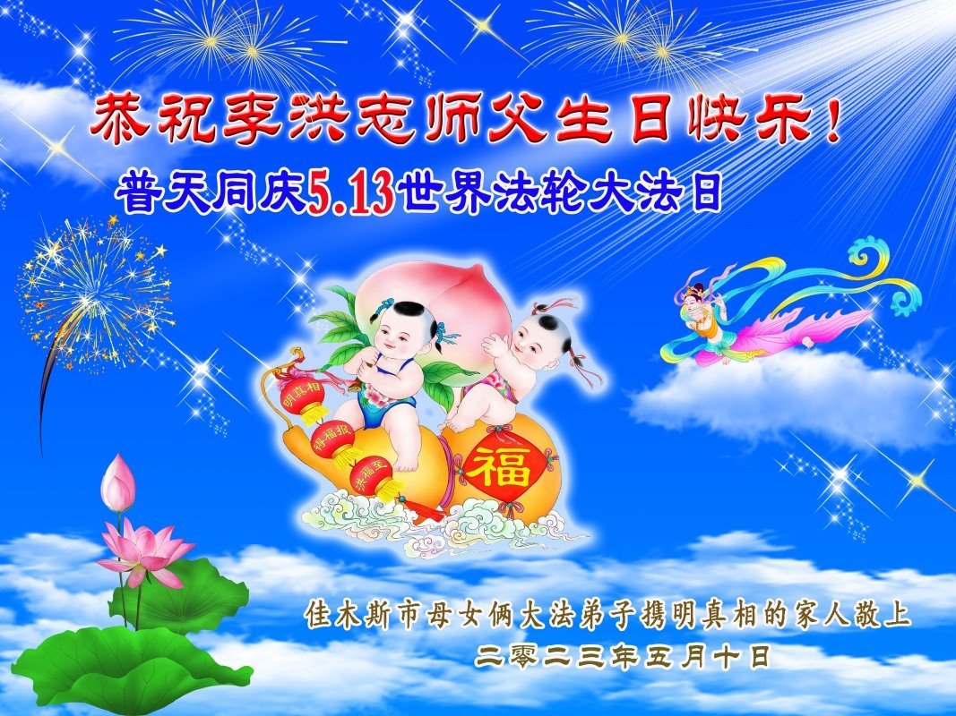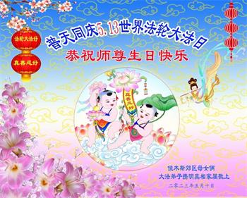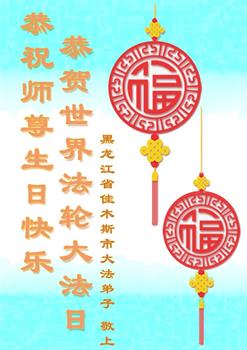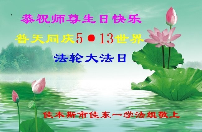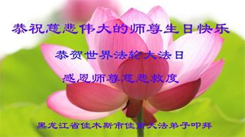 恭贺五·一三世界法轮大法日! 黑龙江省佳木斯市一明真相的大法弟子家属恭祝师父生日快乐!