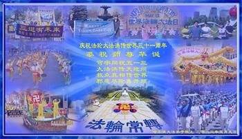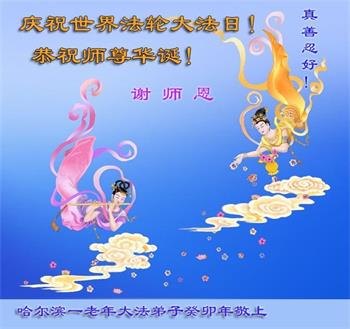恭贺世界法轮大法日! 黑龙江哈尔滨市一老年大法弟子恭贺师尊华诞暨法轮大法日!