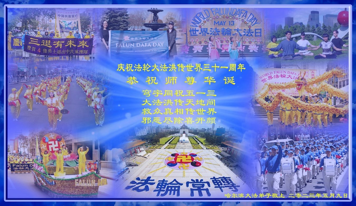 黑龙江哈尔滨一学法小组大法弟子恭祝师尊华诞!恭贺法轮大法洪传世界三十一周年!