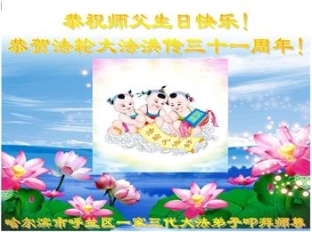 恭祝恩师生日快乐!恭贺世界法轮大法日! 黑龙江省哈尔滨大法弟子恭贺世界法轮大法日暨师尊华诞!