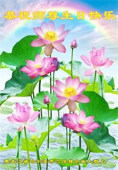 恭贺世界法轮大法日! 师父您辛苦了!感谢师父救度之恩! 大法弟子与女儿一同敬上 黑龙江哈尔滨市大法弟子恭祝师尊生日快乐!