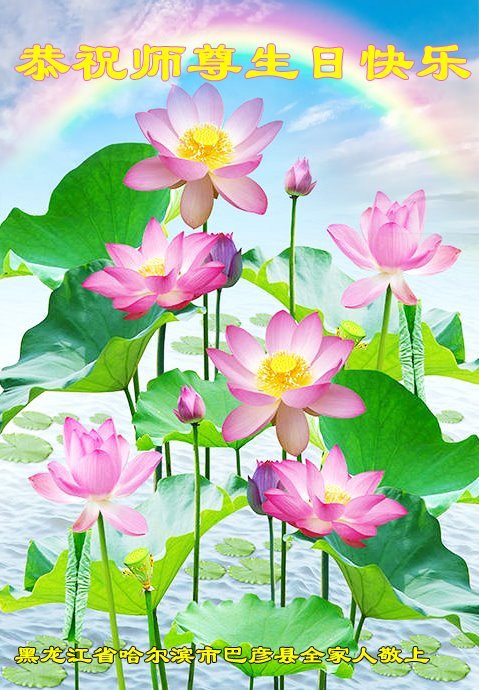 感谢师尊慈悲苦度!最美好的祝愿敬颂给师尊! 哈尔滨大法弟子敬贺 黑龙江省哈尔滨市双城区大法弟子及家人恭祝慈悲伟大的师尊生日快乐!