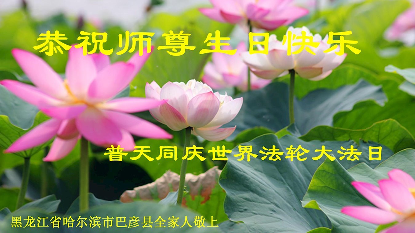 黑龙江省哈尔滨市巴彦县全家人恭祝师尊生日快乐!普天同庆世界法轮大法日! 中国黑龙江省哈尔滨市香坊大法弟子恭祝师尊生日快乐!