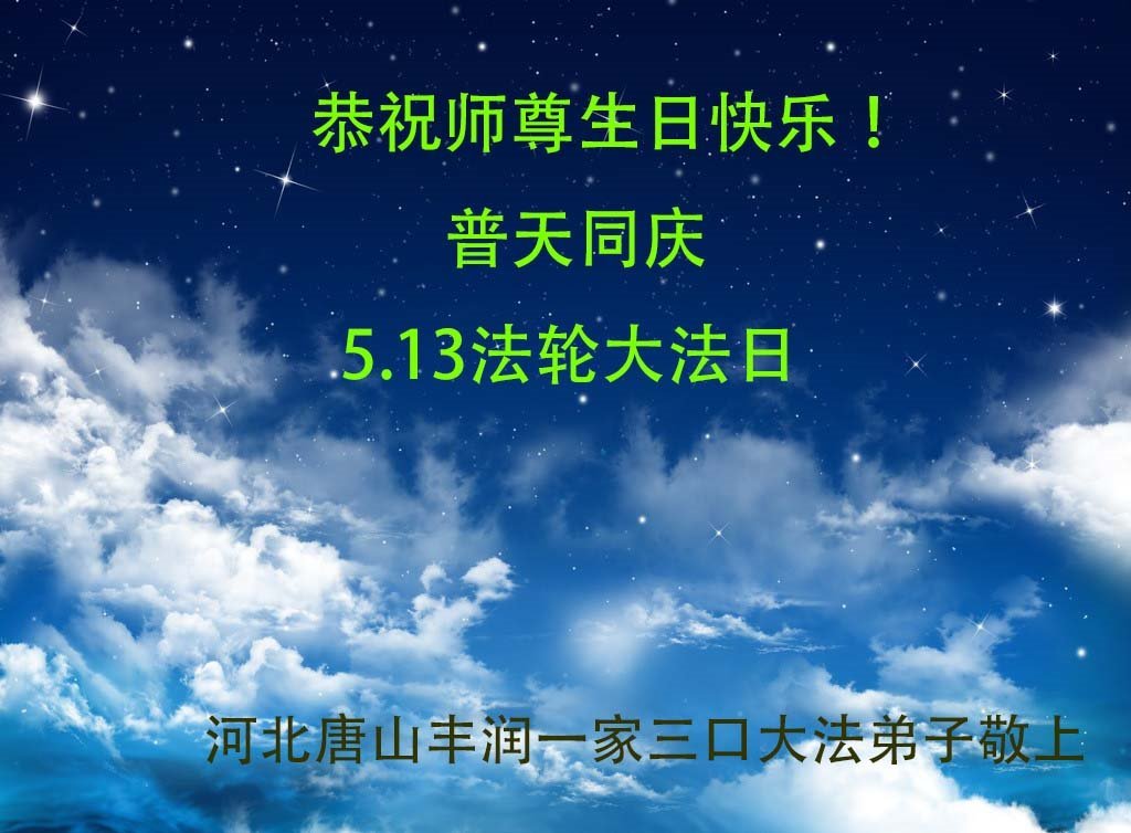 慈悲伟大的师父好!法轮大法好!真善忍好! 河北省迁安市三名大法弟子敬上 河北唐山市丰润区一学法小组大法弟子恭贺世界法轮大法日!