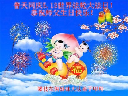 恭祝师父生日快乐!恭祝世界法轮大法日! 四川绵阳一大法弟子及全家恭祝师尊生日快乐!庆贺世界法轮大法日!