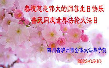全体大法弟子叩拜师尊!感谢慈悲伟大的师尊救度所有众生! 二零二三年五月十一日 四川省泸州市全体大法弟子恭祝慈悲伟大的师尊生日快乐!普天同庆世界法轮大法日!