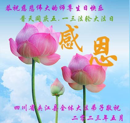 【明慧网二零二三年五月十四日】 四川省乐山市夹江县大法弟子恭祝师尊生日快乐!