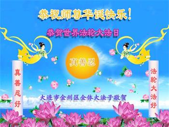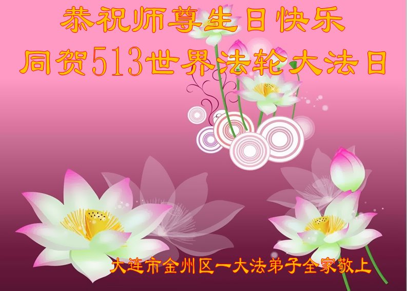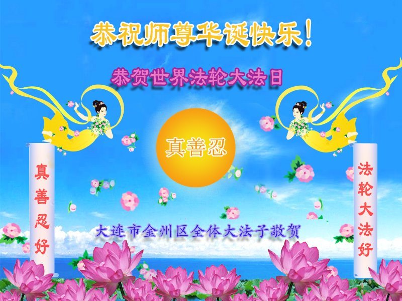 恭贺世界法轮大法日! 恭祝师尊生日快乐!恭贺世界法轮大法日! 师尊,您辛苦了! 辽宁大连大法弟子及家人敬贺 辽宁省大连市金州区全体大法弟子恭祝慈悲伟大的师尊华诞快乐!