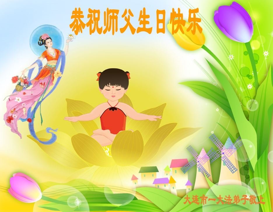 辽宁大连市一大法弟子恭祝师尊生日快乐!