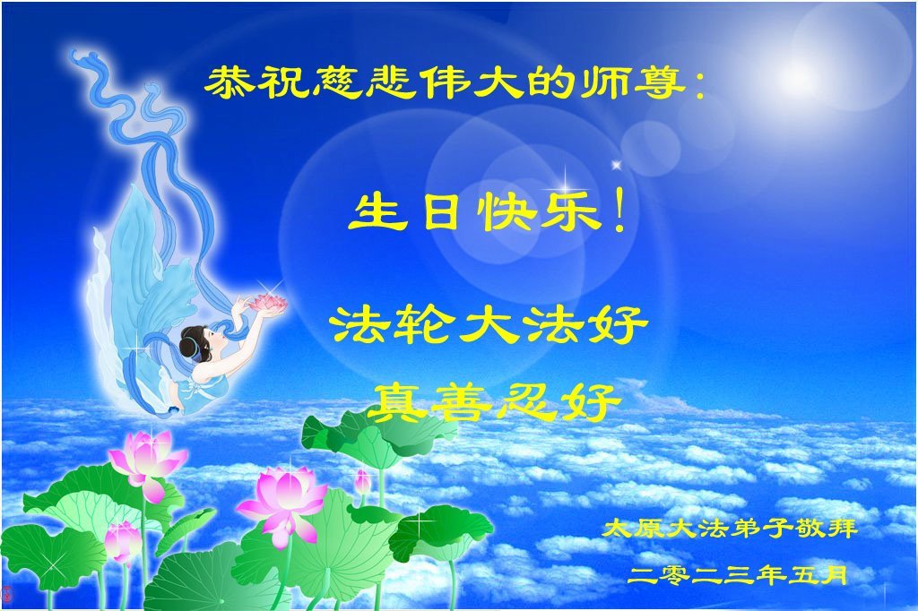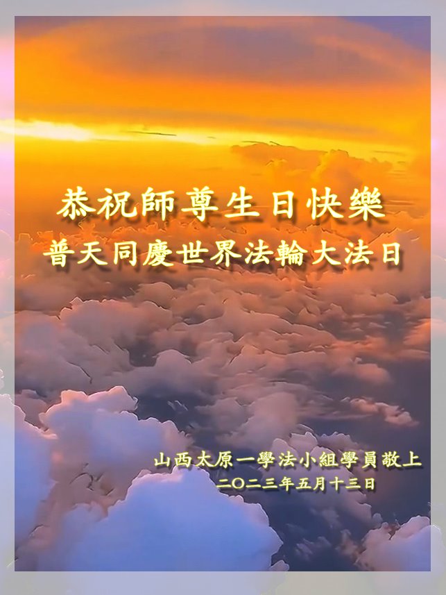 【明慧网二零二三年五月十四日】 山西太原大法弟子恭祝慈悲伟大的师尊生日快乐!